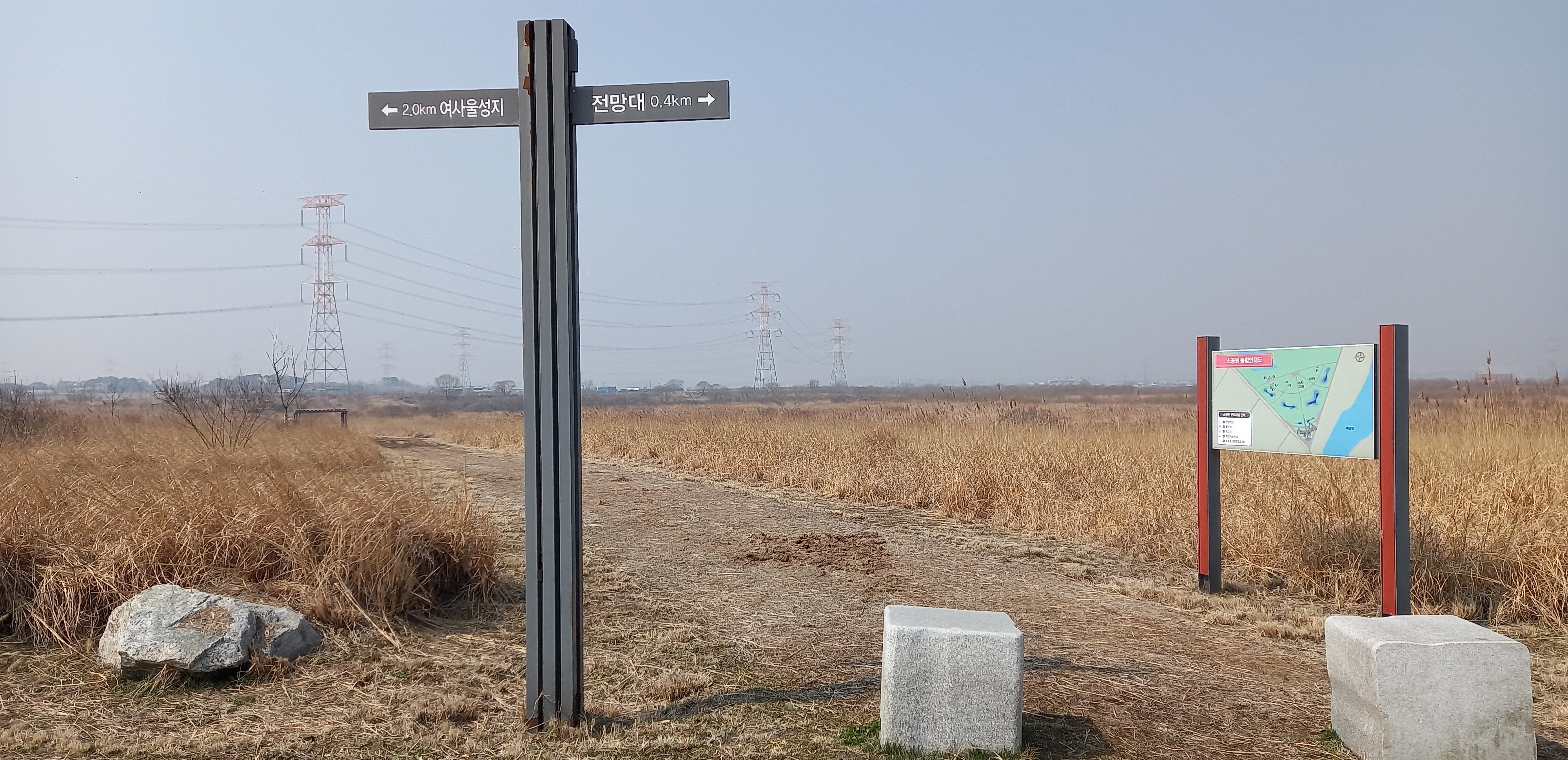 갈대가 많아 굴포공원? 전망대 0.4km 이정목: