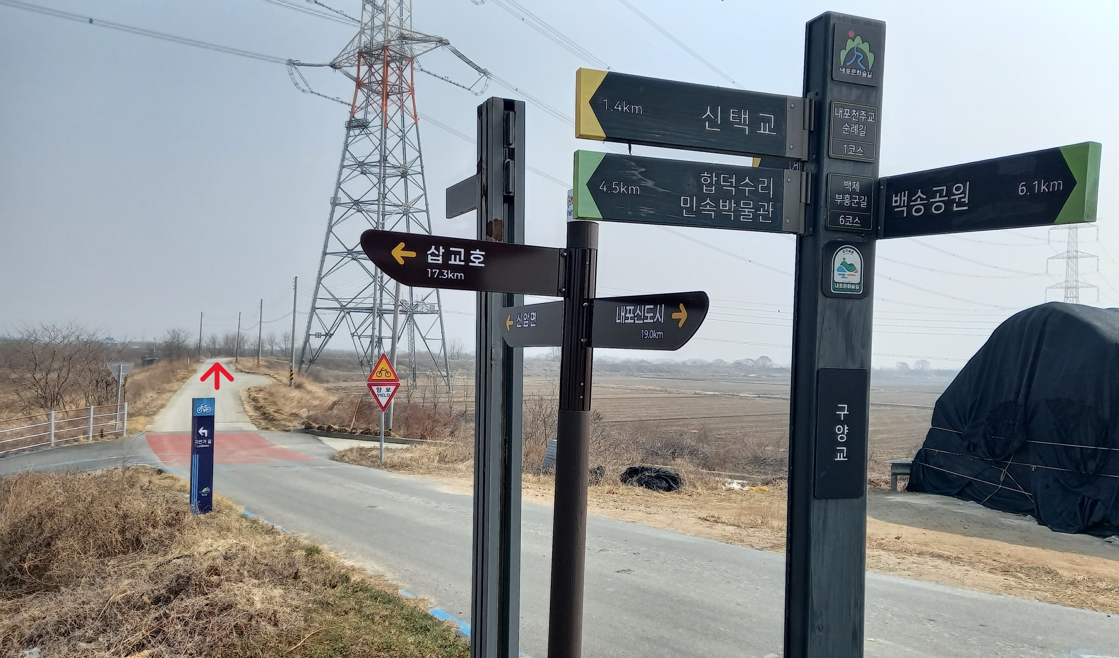 고덕면과 신암면을 연결하는 구만교 넘기 직전 신암면 별2리에서 출발합니다. 지난번에는 고덕면 구만포구 기념공원에서 시작해 구만교를 역으로 넘어와 구양교 방면으로 걷다 중예1 배수장 인근에서 벌판을 질러 ‘추사 암각문’을 탐방하느라 삽교천 걷기 놓친 구간을 걷는 여정입니다. 중예1 배수장에서 구양교 까지 약6km를 걸어야 무한·삽교천 일주는 완성됩니다.