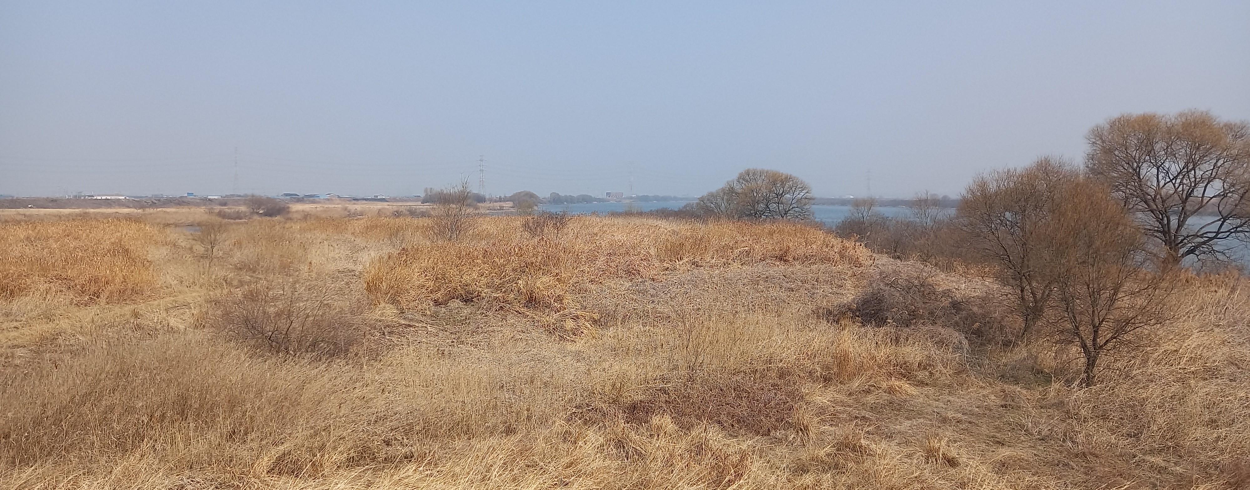 흐린 날씨와 갈대가 분위기를 울씨년하게:
