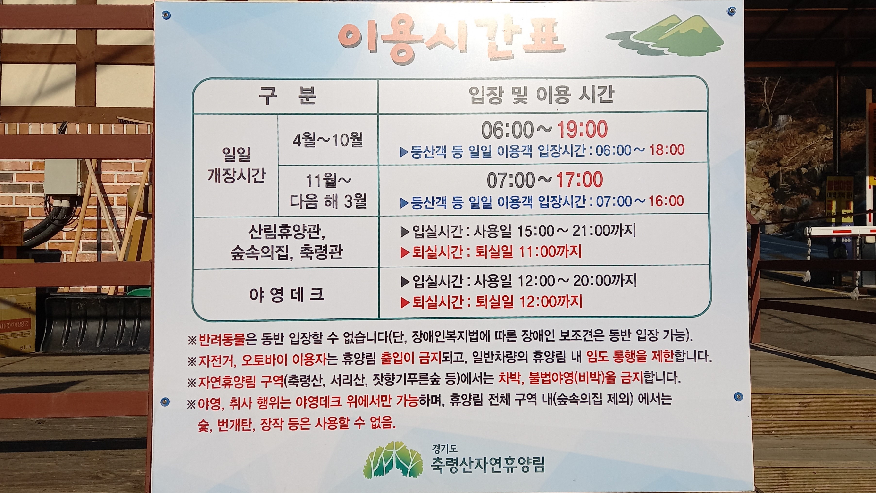 | 축령산출발: 06:45 08:25 10:00 11:25 13:10 15:00 16:35 18:45 20:30 21:50 |