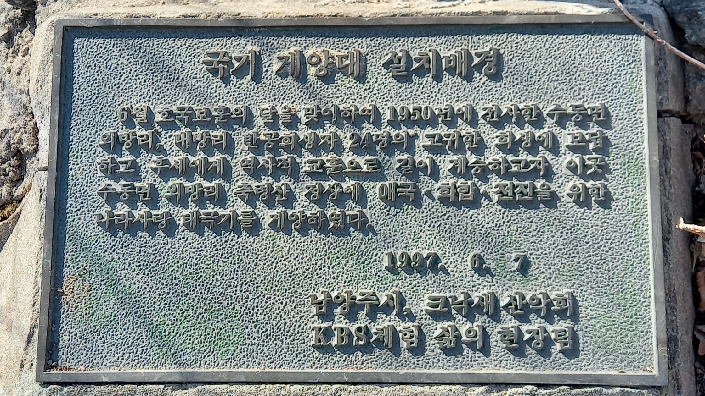 국기 게양대 설치배경 동판:
