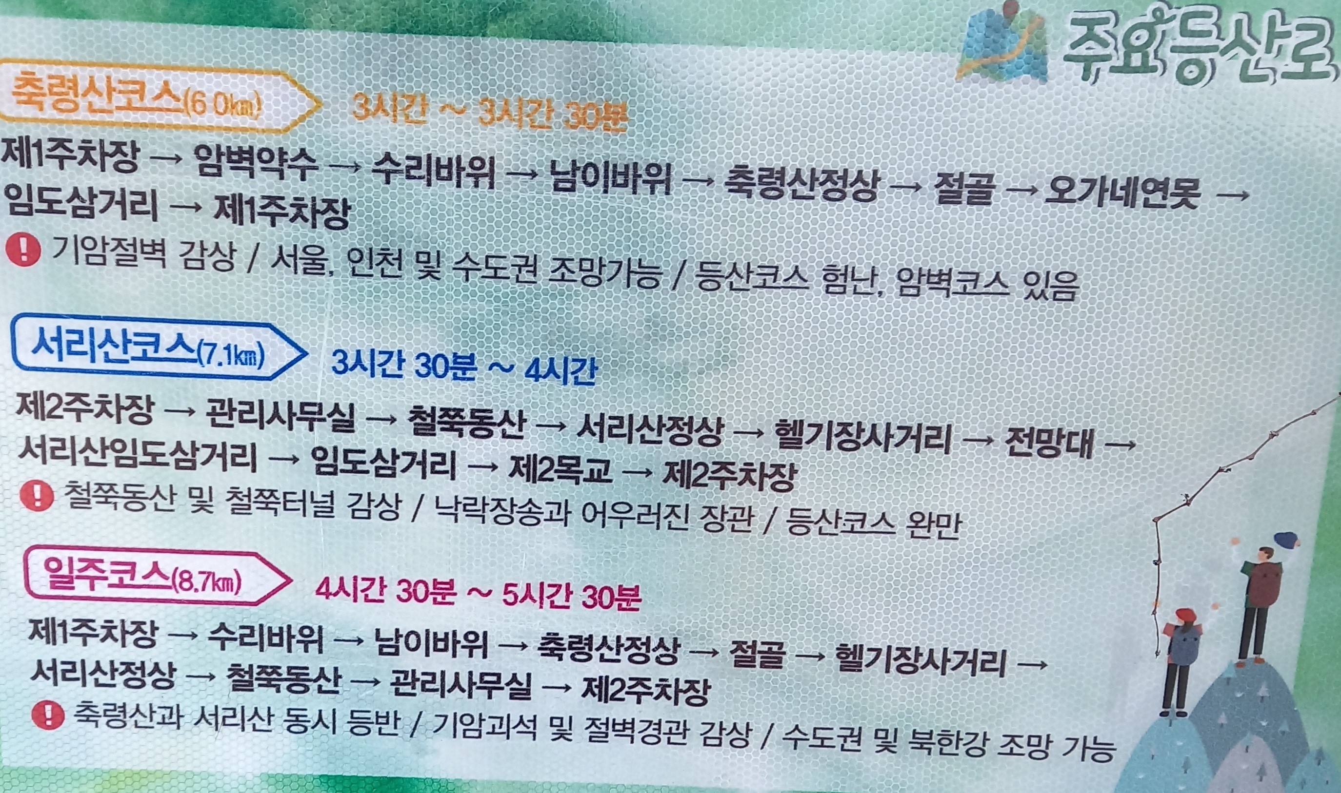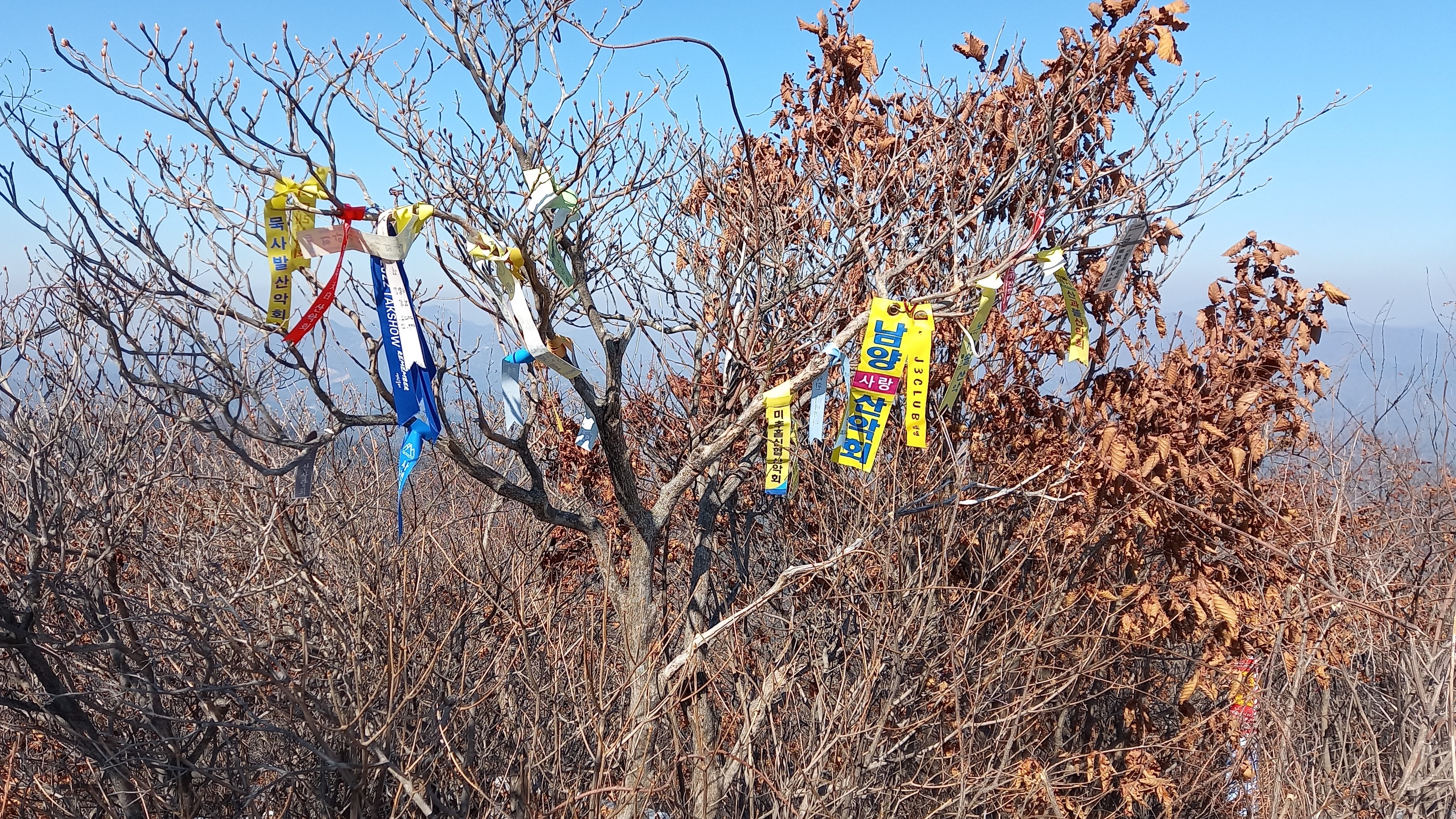 좌측단 묵사발 산악회 비롯 산행 띠: