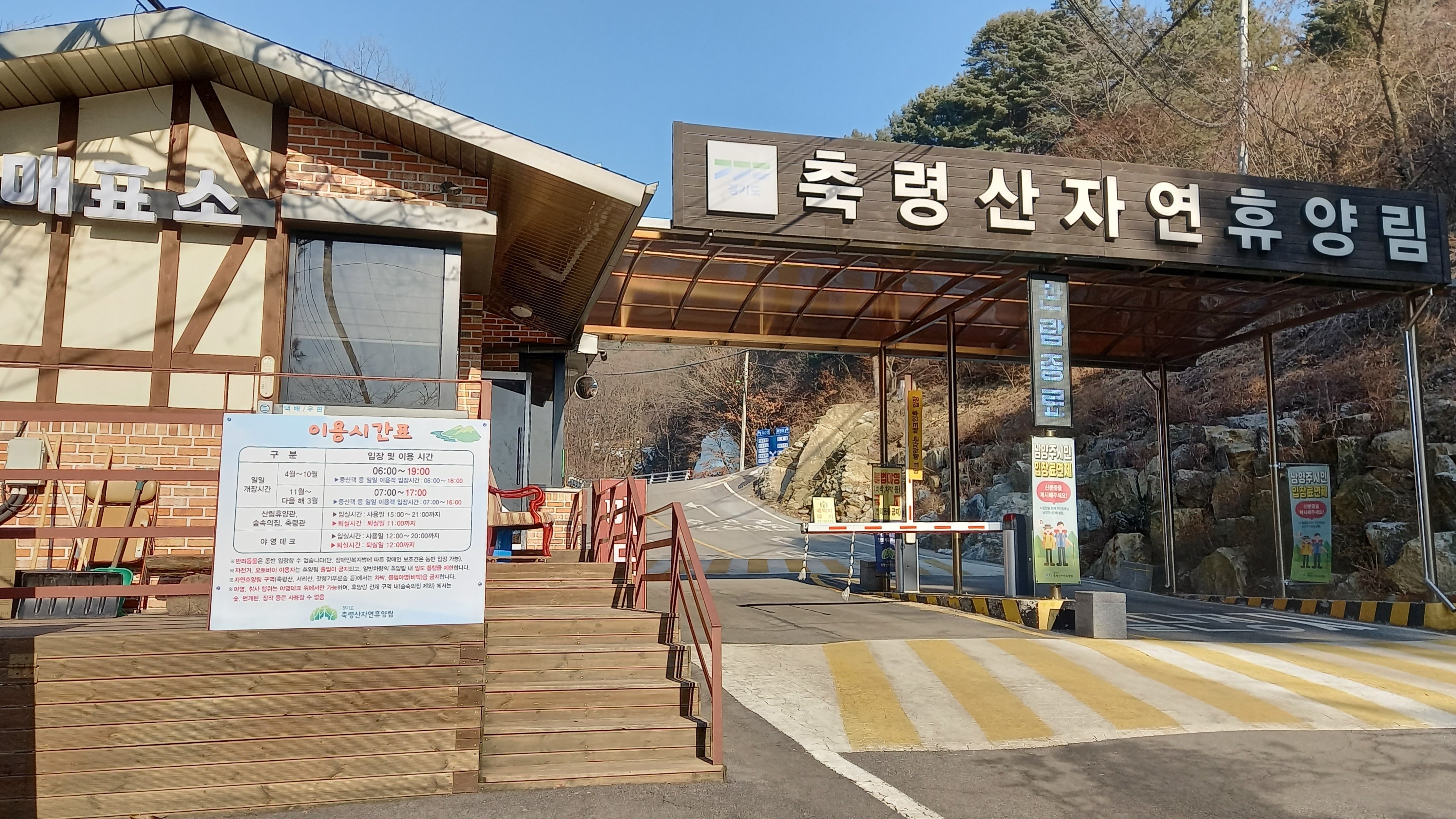 매표소 통과해 바로 매표소삼거리에서 축령산 산행 시작 추천합니다/힘 넘치면 축령산~절골~서리산 연계 산행: