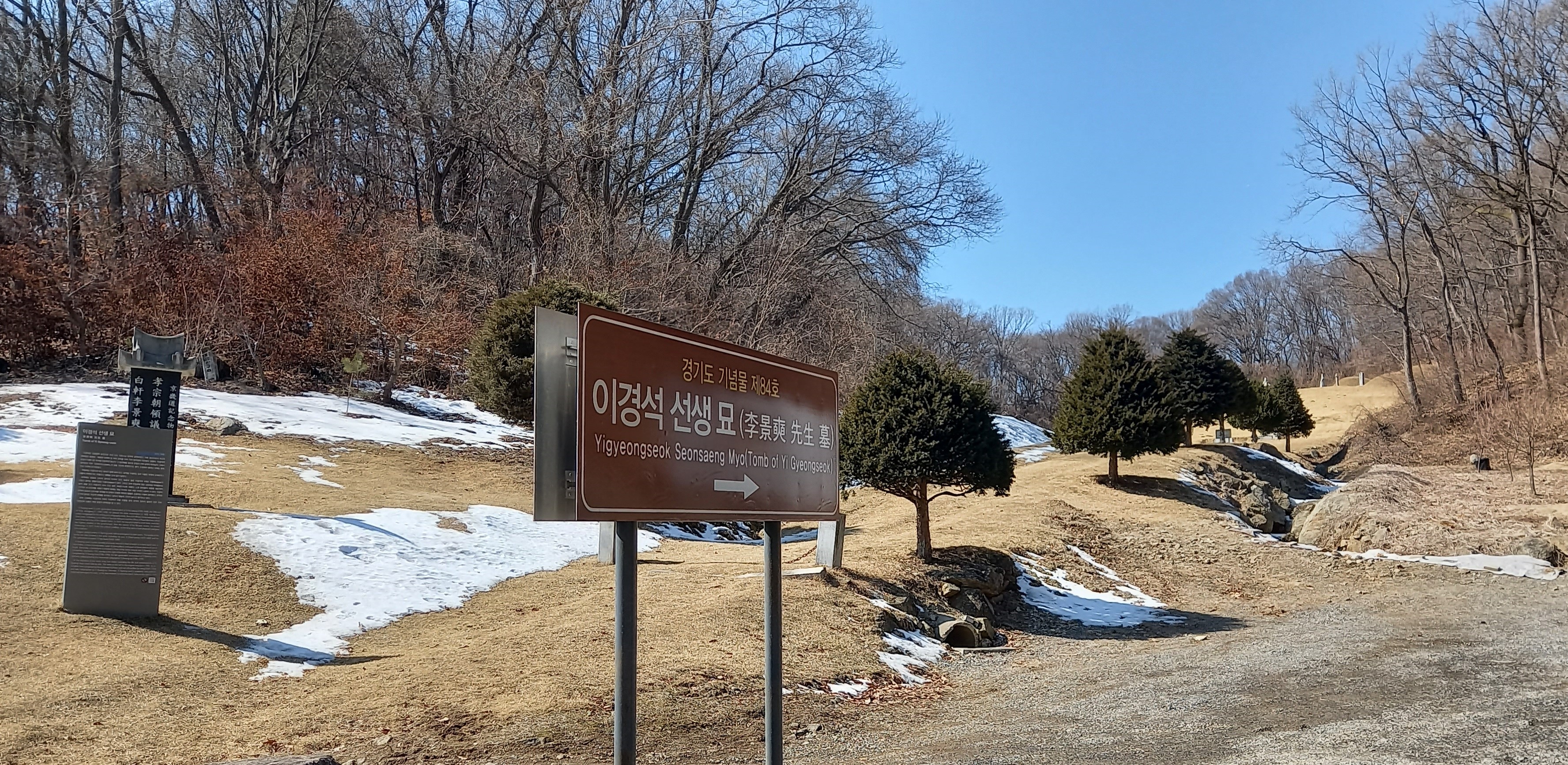 이경석 선생 후손 문중 묘는 맞은 편으로: