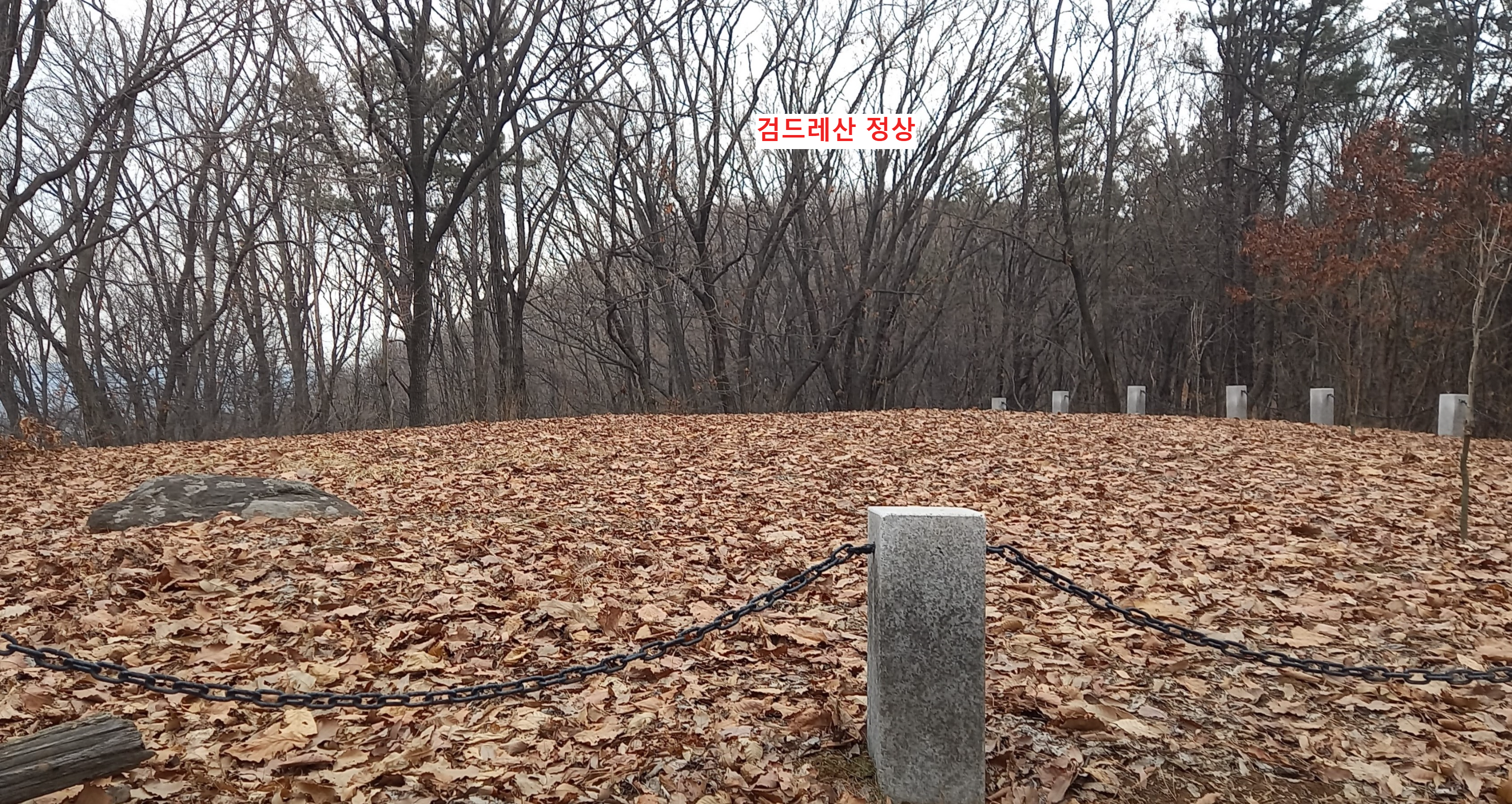 → 수지구 개발과정에서 향토사와 관련 없는 행복언덕쉼터라는 관제(官製) 이름이 붙은 검드레산을 신봉동 자이아파트 단지와 가까워 산행인들이 ‘신봉산’이라고 부르기 시작한 것은 이해할 수 있으나 일부 산행인들이 검드레산 위치를 말구리고개 근처 봉우리로 오인하는 점을 다시 지적하고 싶습니다.