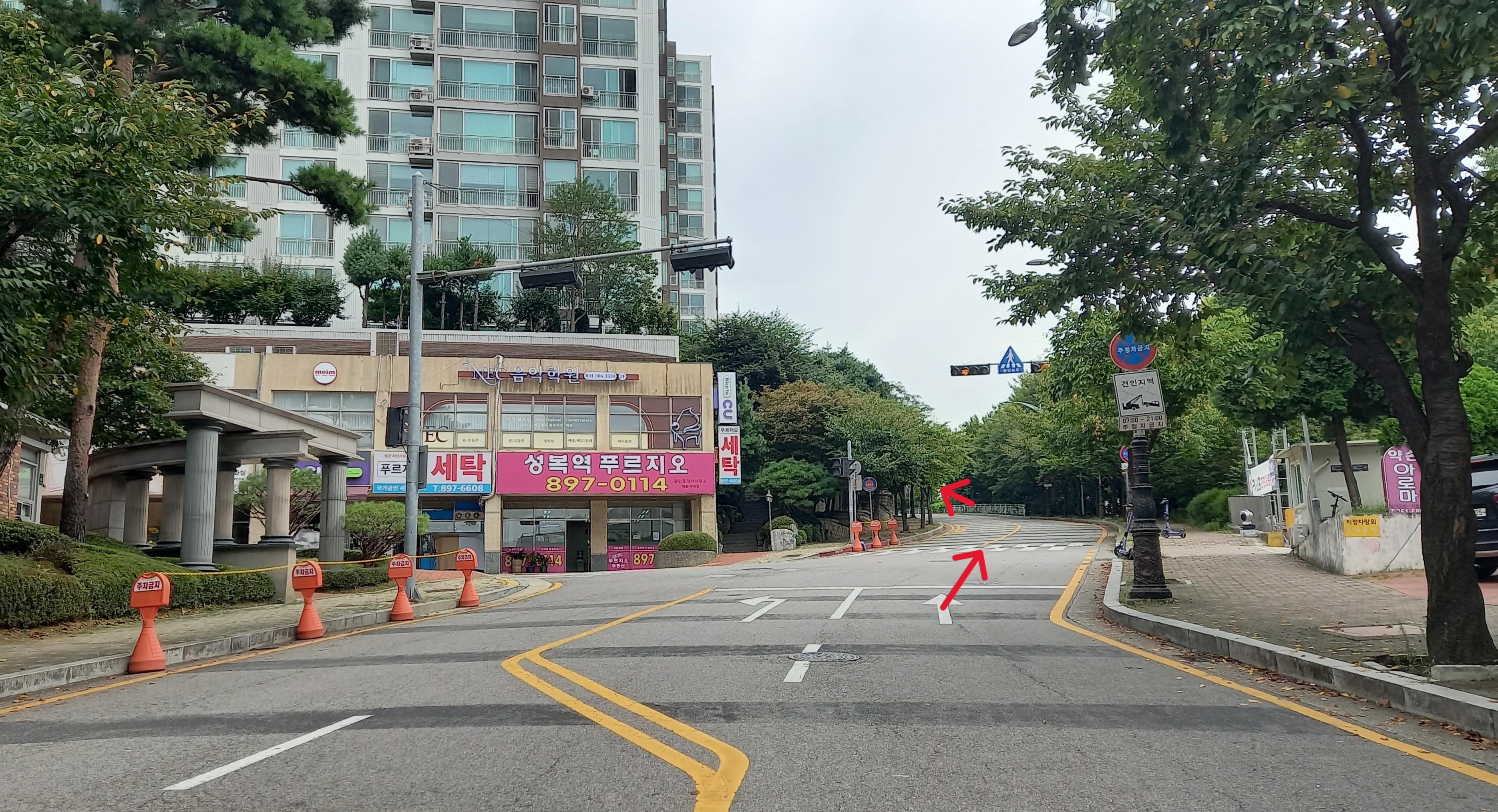 수지로로 내려와 성복역 방향으로: