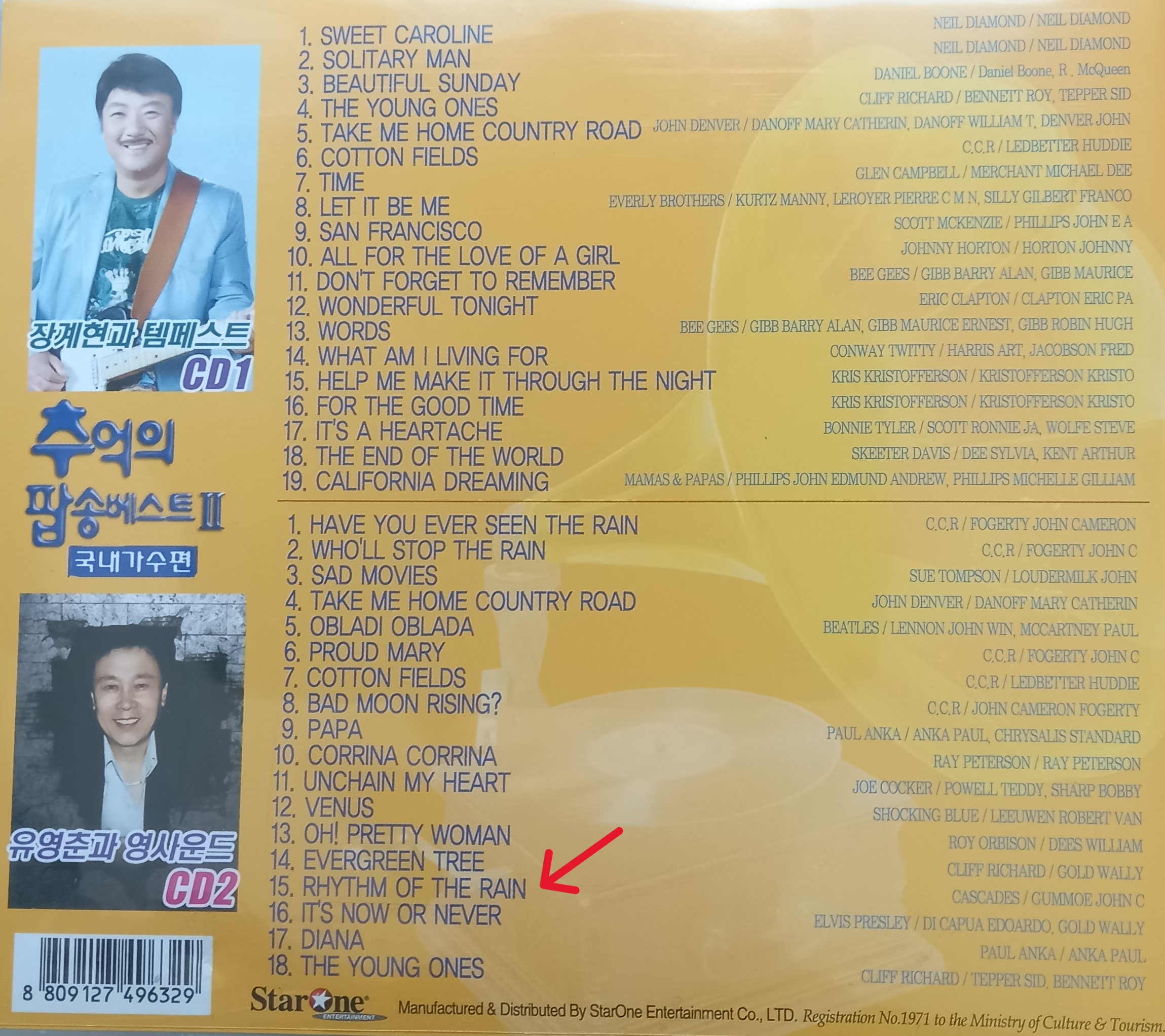 ↑ CD2 유영춘과 영사운드 트랙 15번(RHYTHM OF THE RAIN)
