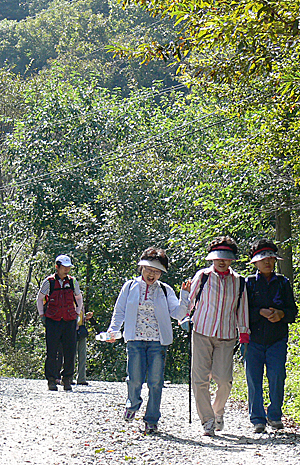 산길은 그동안 바삐 살아오느라, 돈 걱정에다 자식 걱정에다, 온갖 걱정에 시달리느라 가을을 느끼지 못한 일행에게 문뜩 가을을 선물한다. 은운리-분저리간 산길은 대청호의 절경을 감상하며 걷는 최고의 가을길이다. 벌써부터 길가 대추나무 밑에 떨어진(?) 진짜 달콤한 대추를 주워먹고, 가산천 주변에선 으름에다, 밤 주워먹고, 은운리 언목마을에서는 호두와, 길에서 산초 열매까지 수확한 일행들에게는 여유로운 여울길.