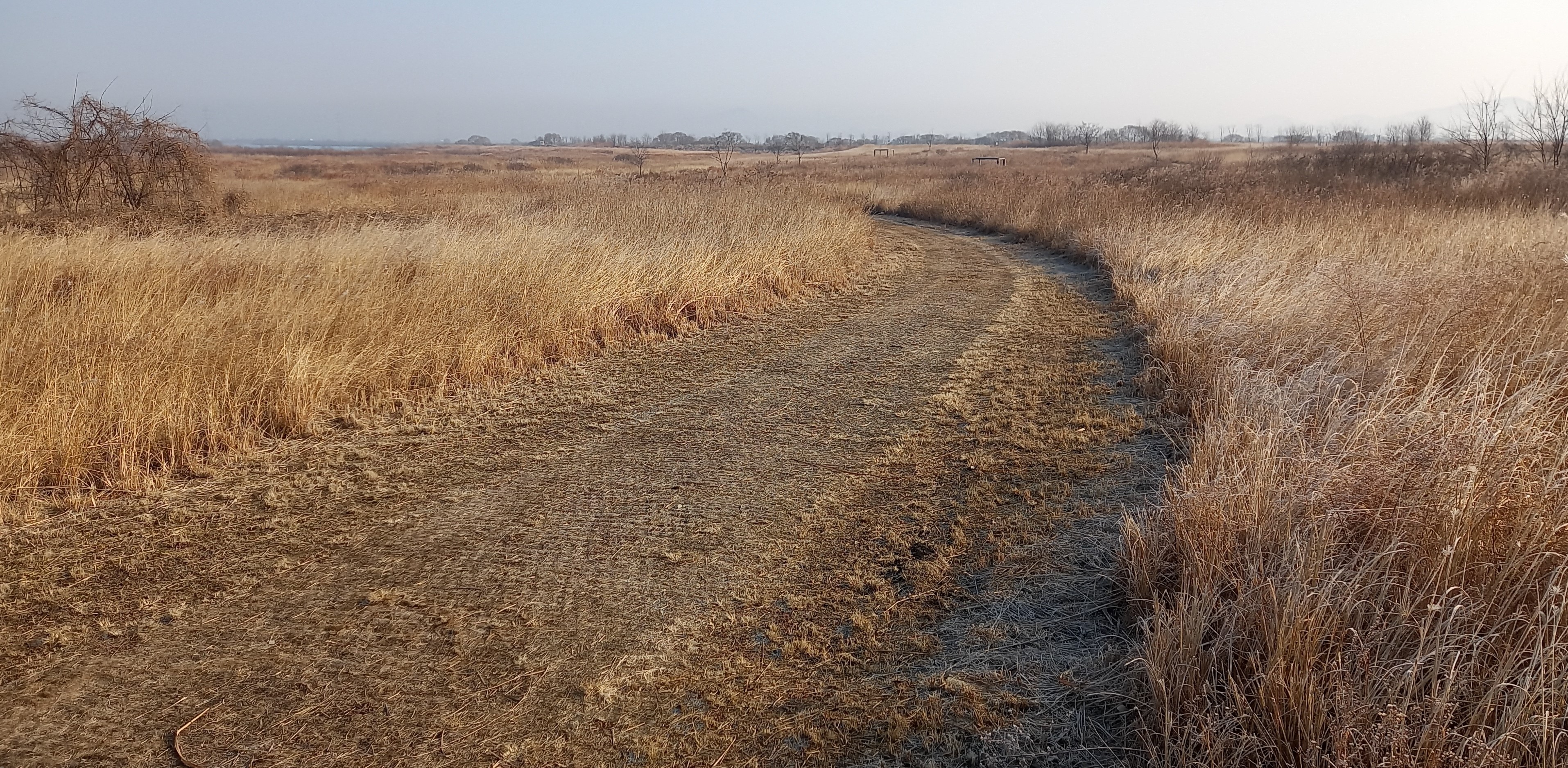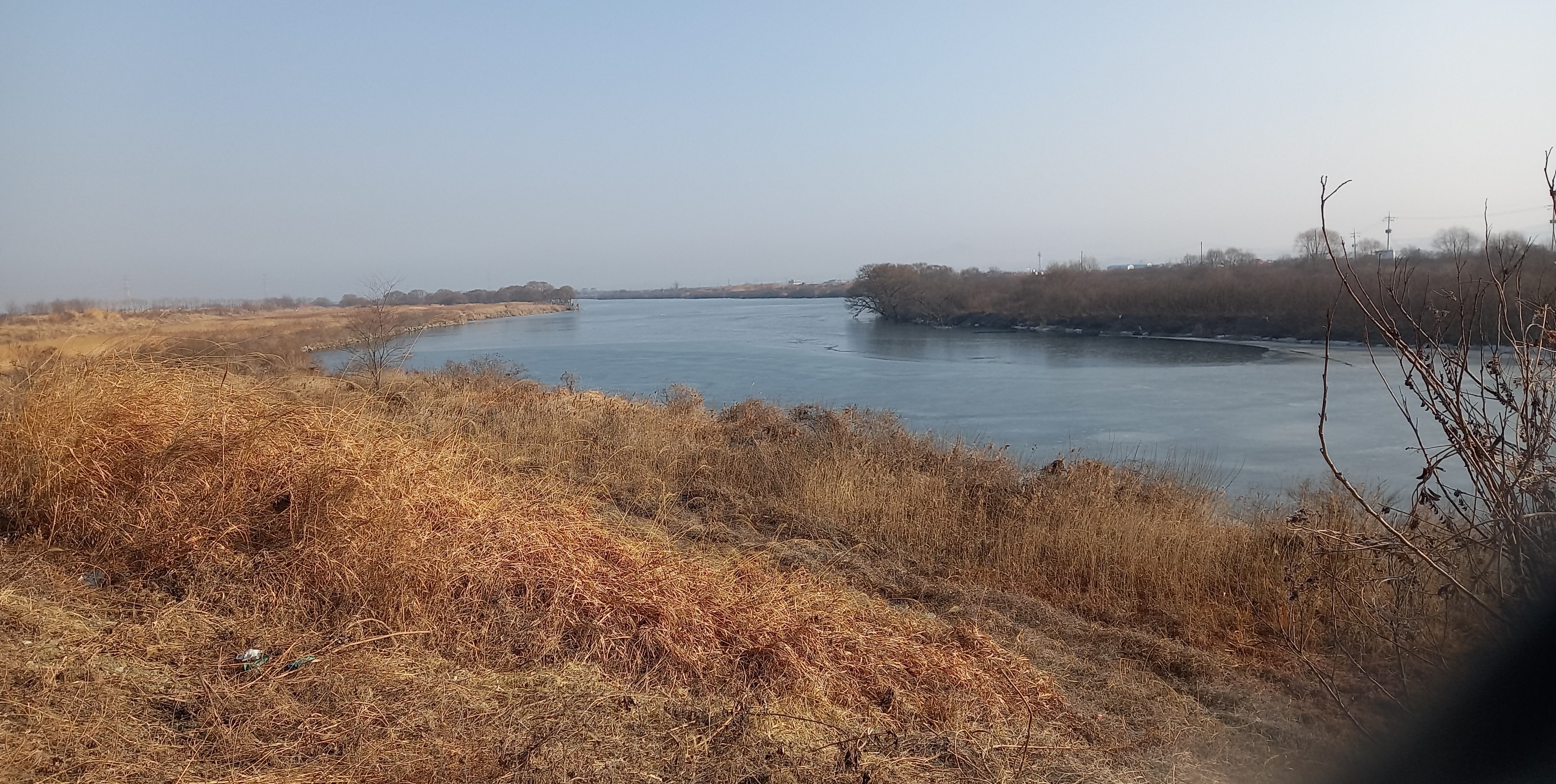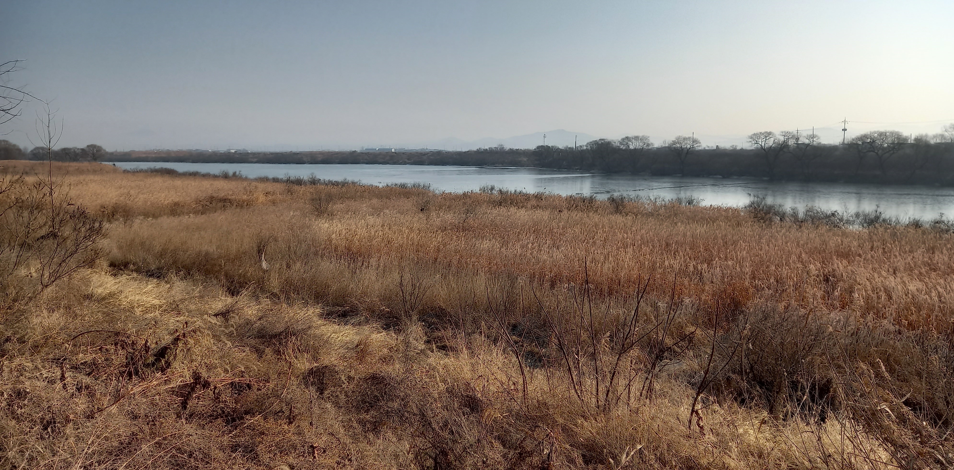 예산군 신암면 신종리에는 무한천과 삽교천이 만나 삽교호로 흘러가는 합수점이 있습니다. 탐방객 하나 없는 뚝방에서 고요히 바라보는 무한천·삽교천 합수점 풍경은 겨울 갈대로 쩔어 쓸쓸하면서도 아름답습니다. 무한천, 삽교천 물길 휘도는 가운데 넓은 평야를 만들었습니다.