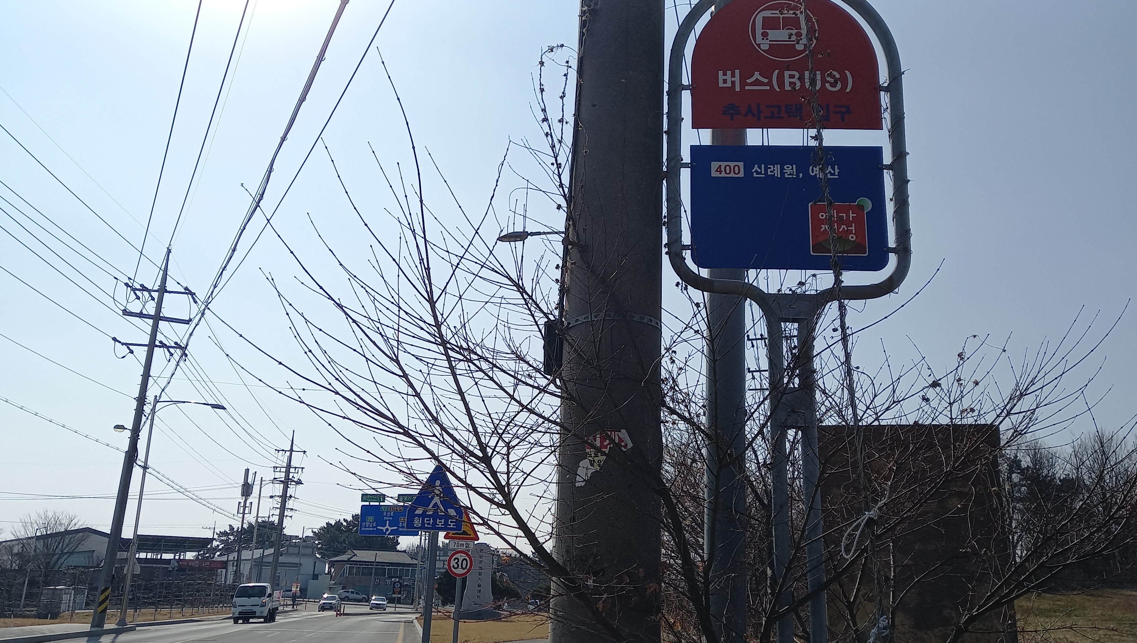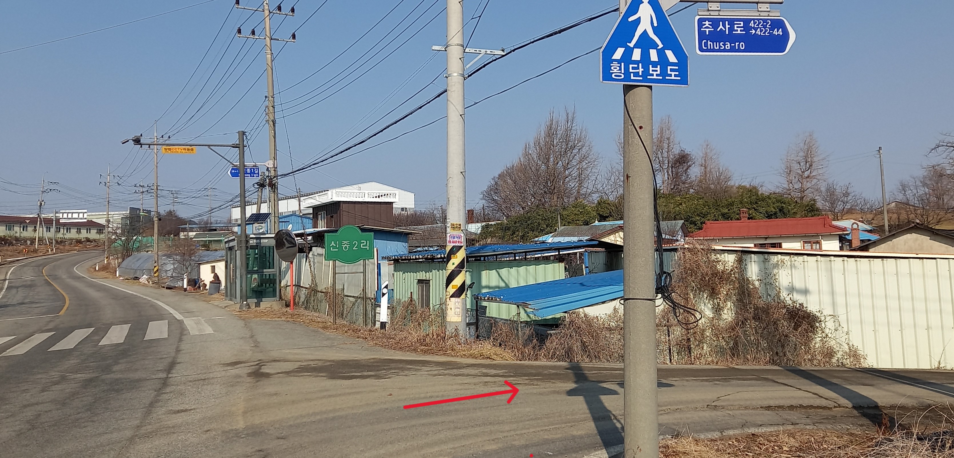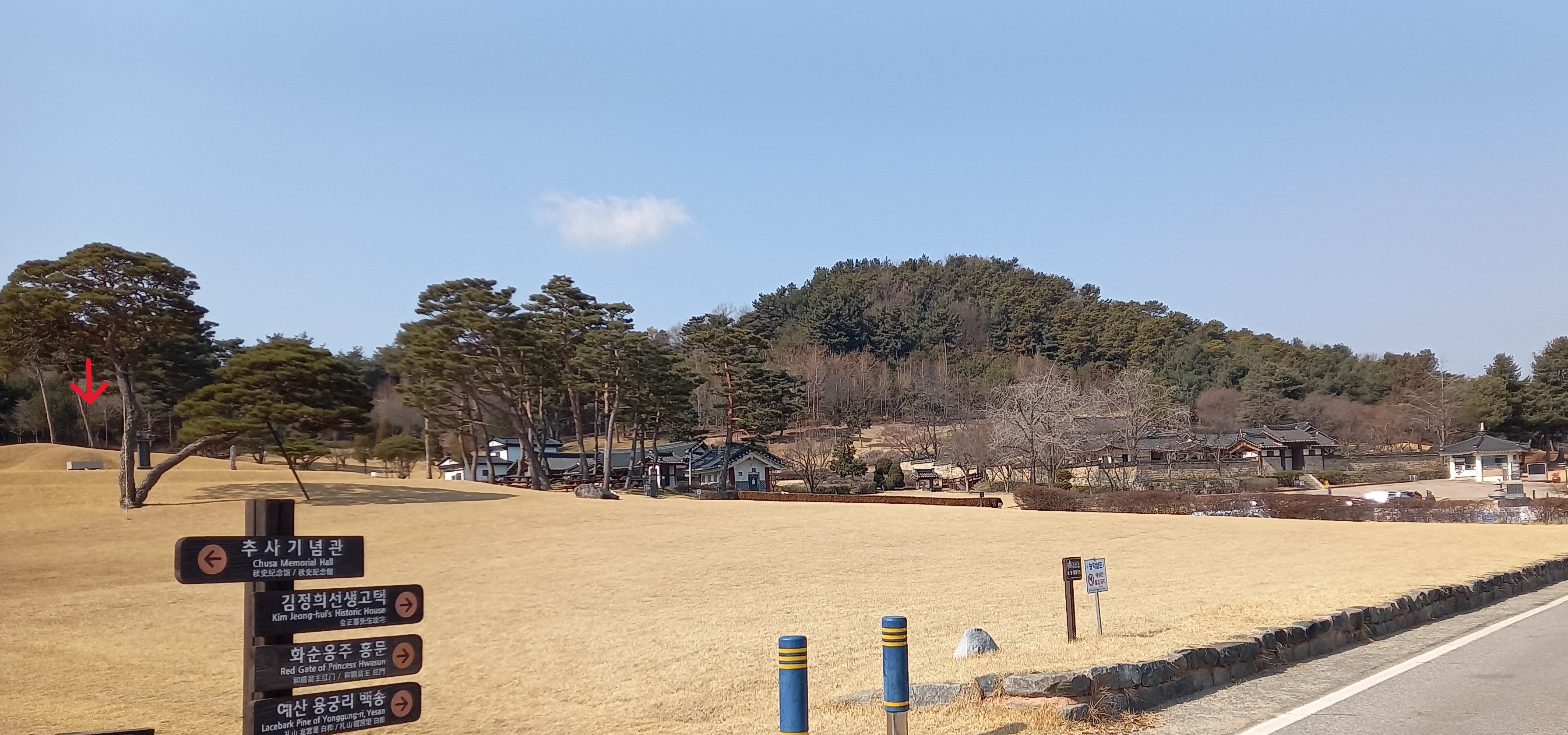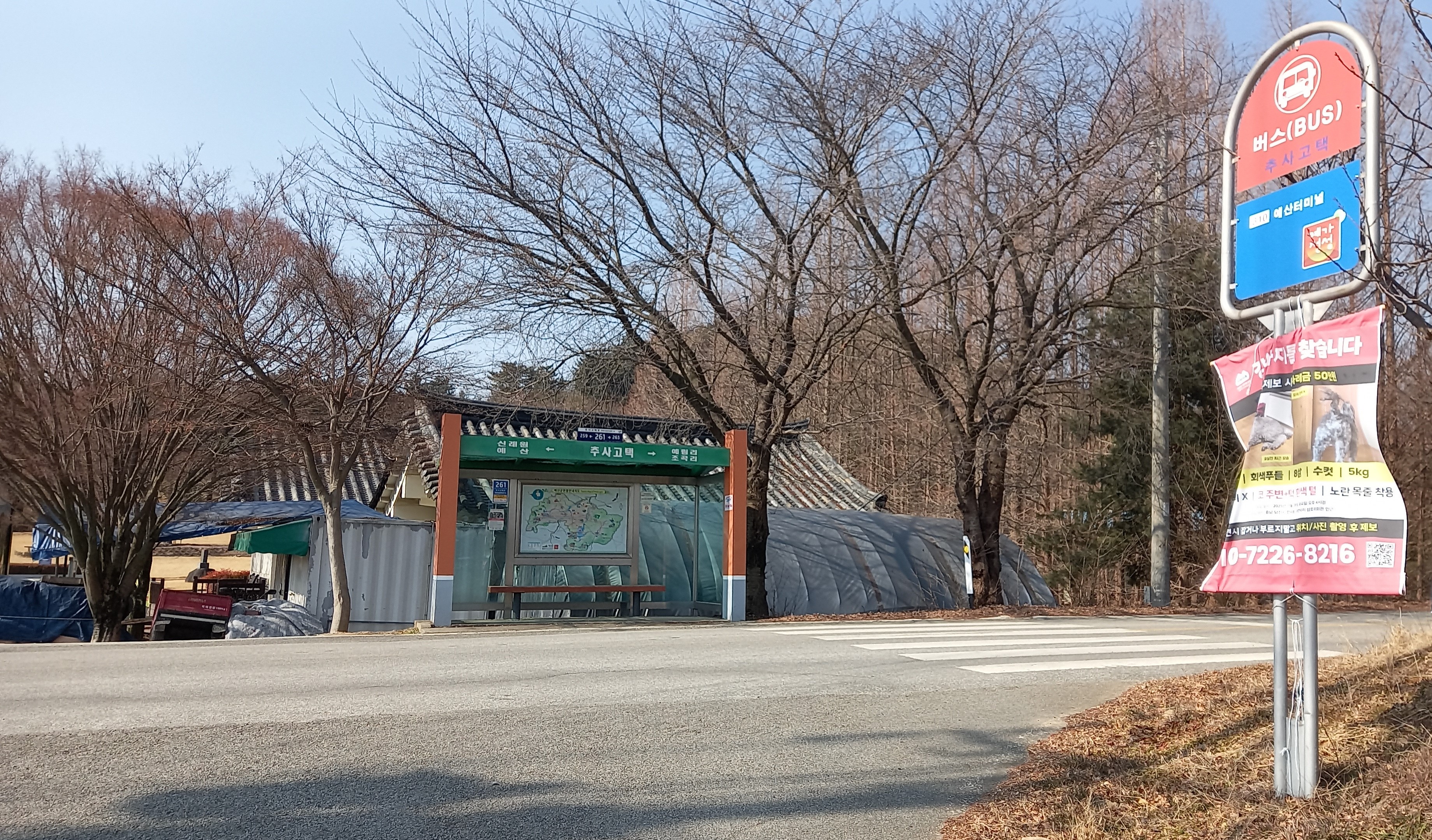 반대편 버스정류장 이름은 추사고택입구. 추사고택입구에서 추사고택은 약1.2km: