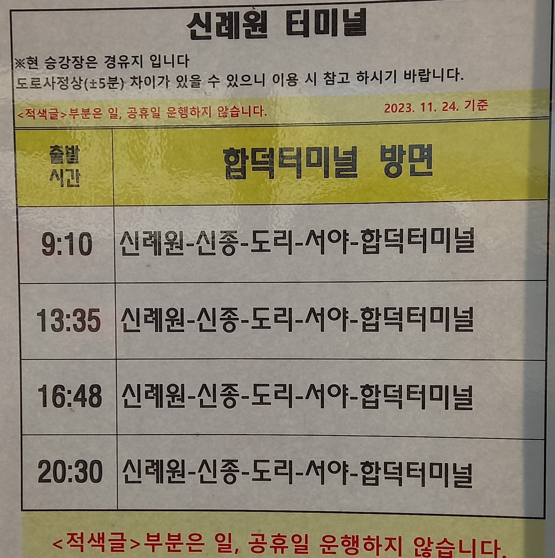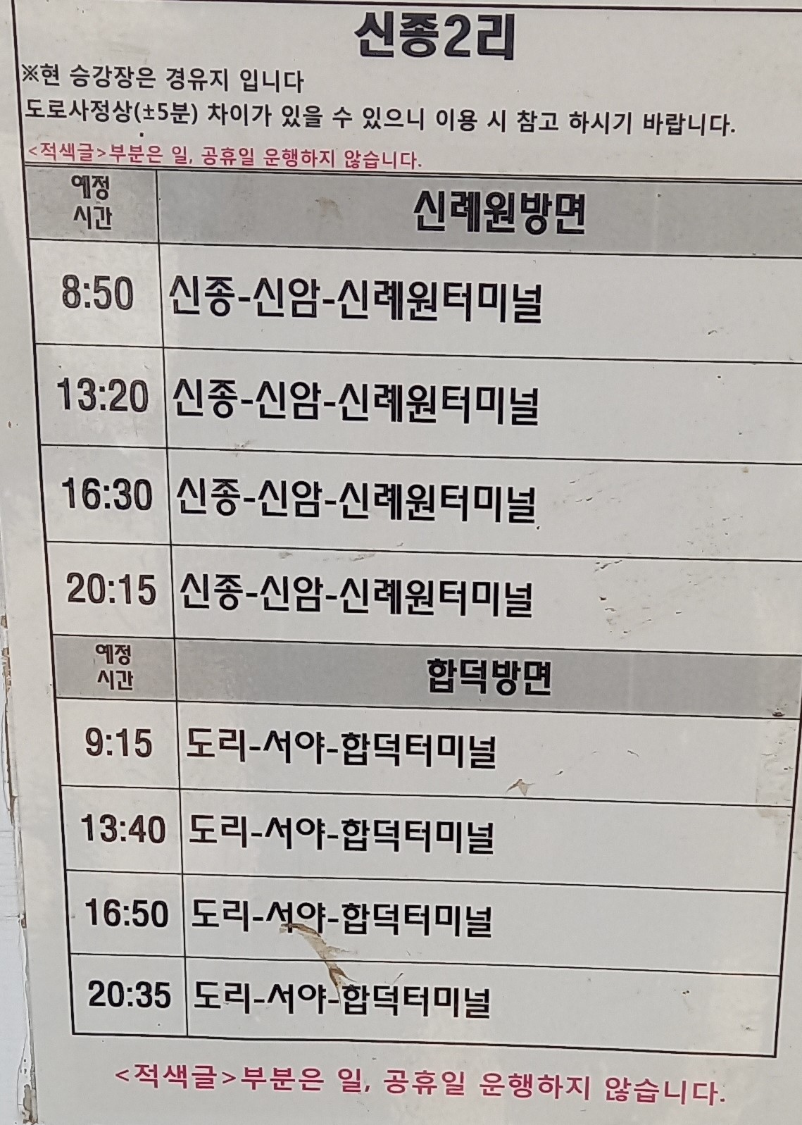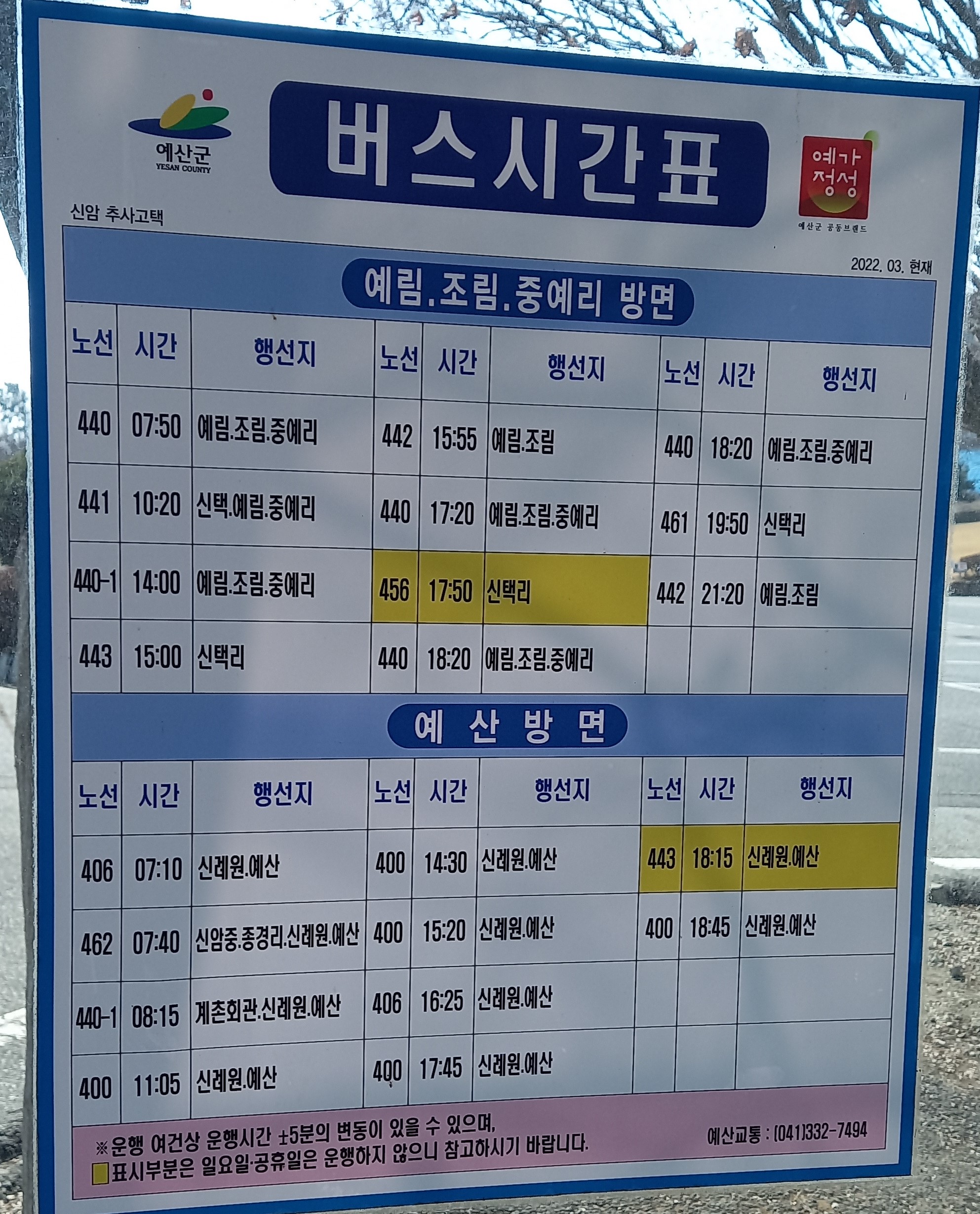 신종2리 예산교통 버스시간표: