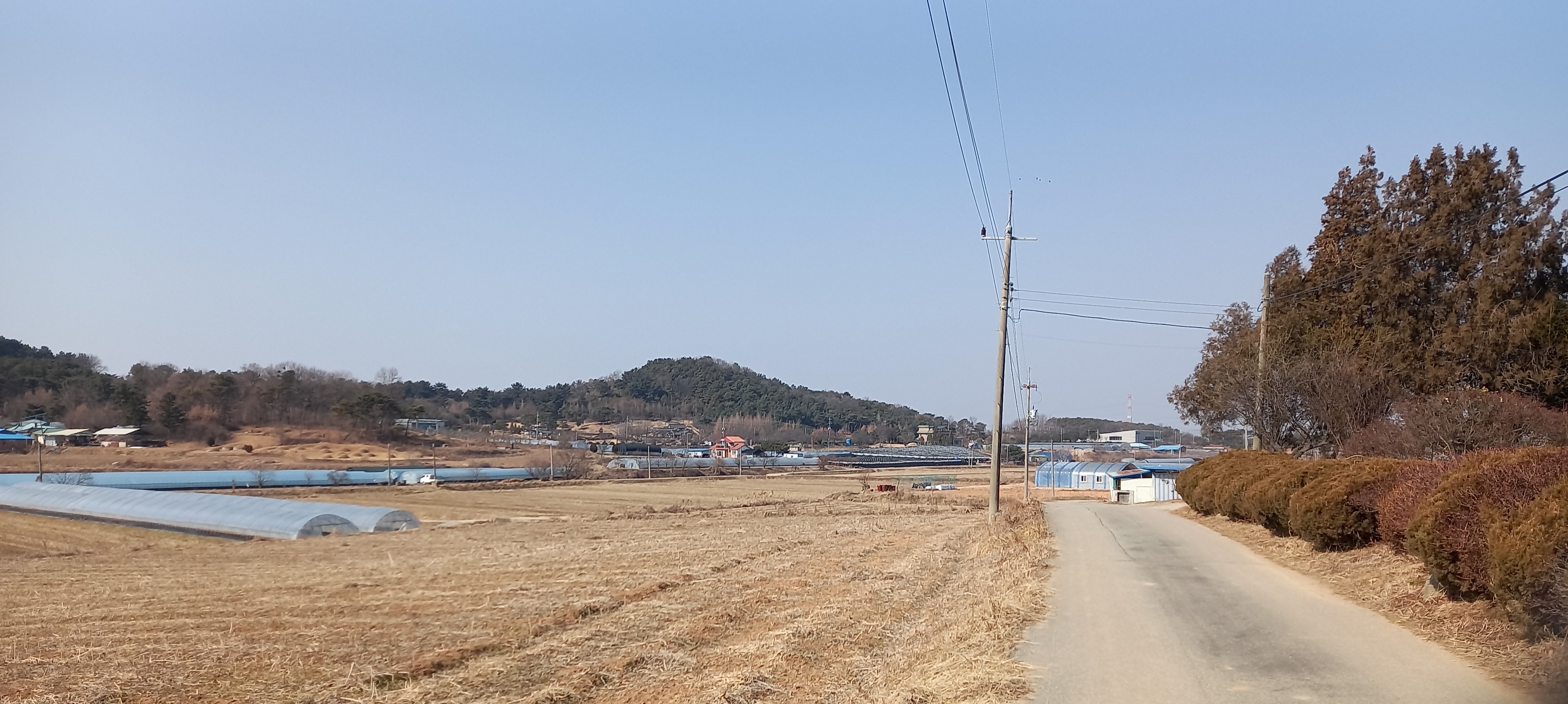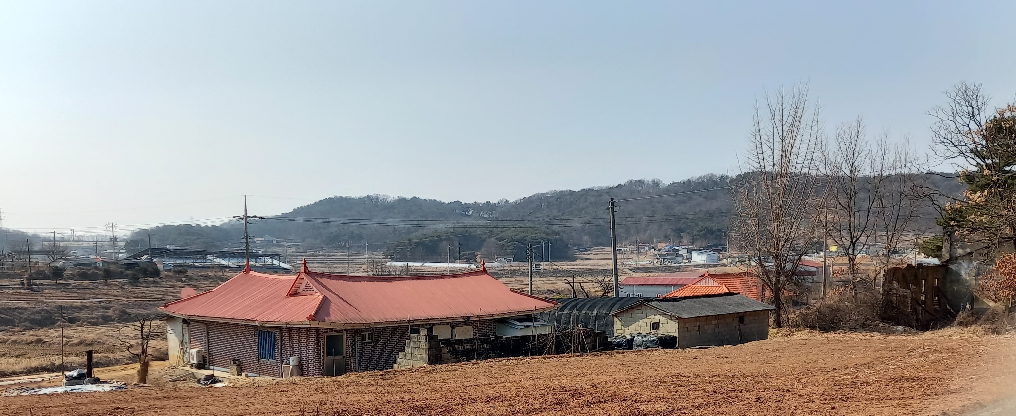 좌측 들판 넘어 멀리 추사고택이 있는 봉수지맥이 보입니다: