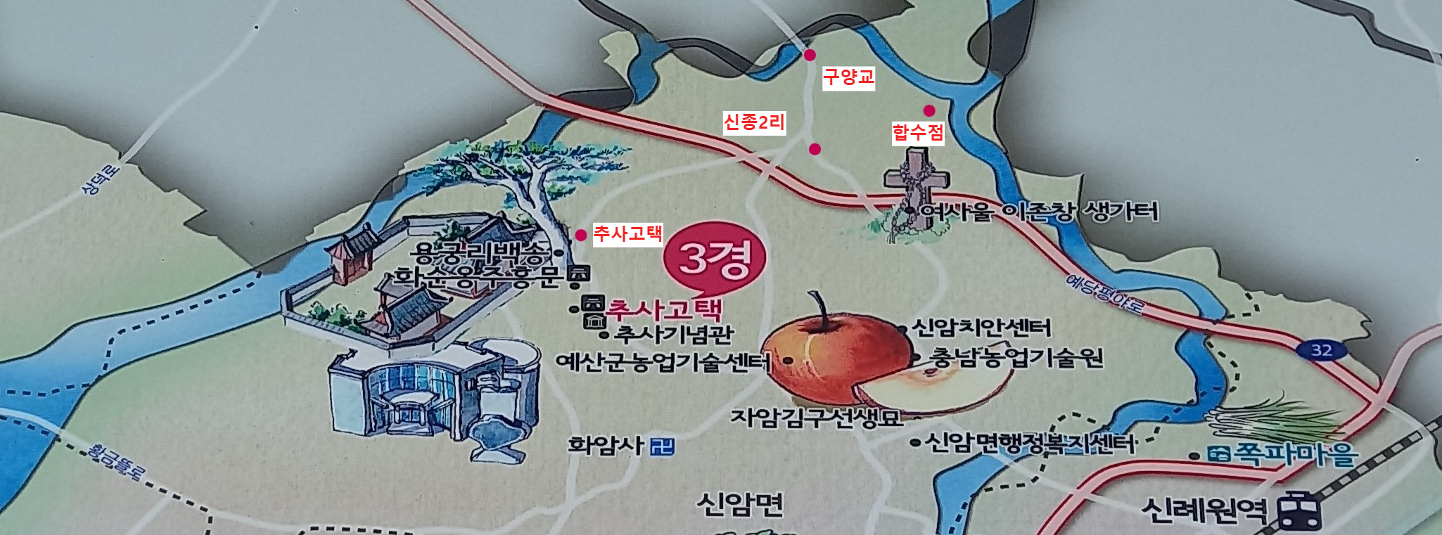 무한천, 삽교천 중간 지점인 예산군 추사로 선택:
