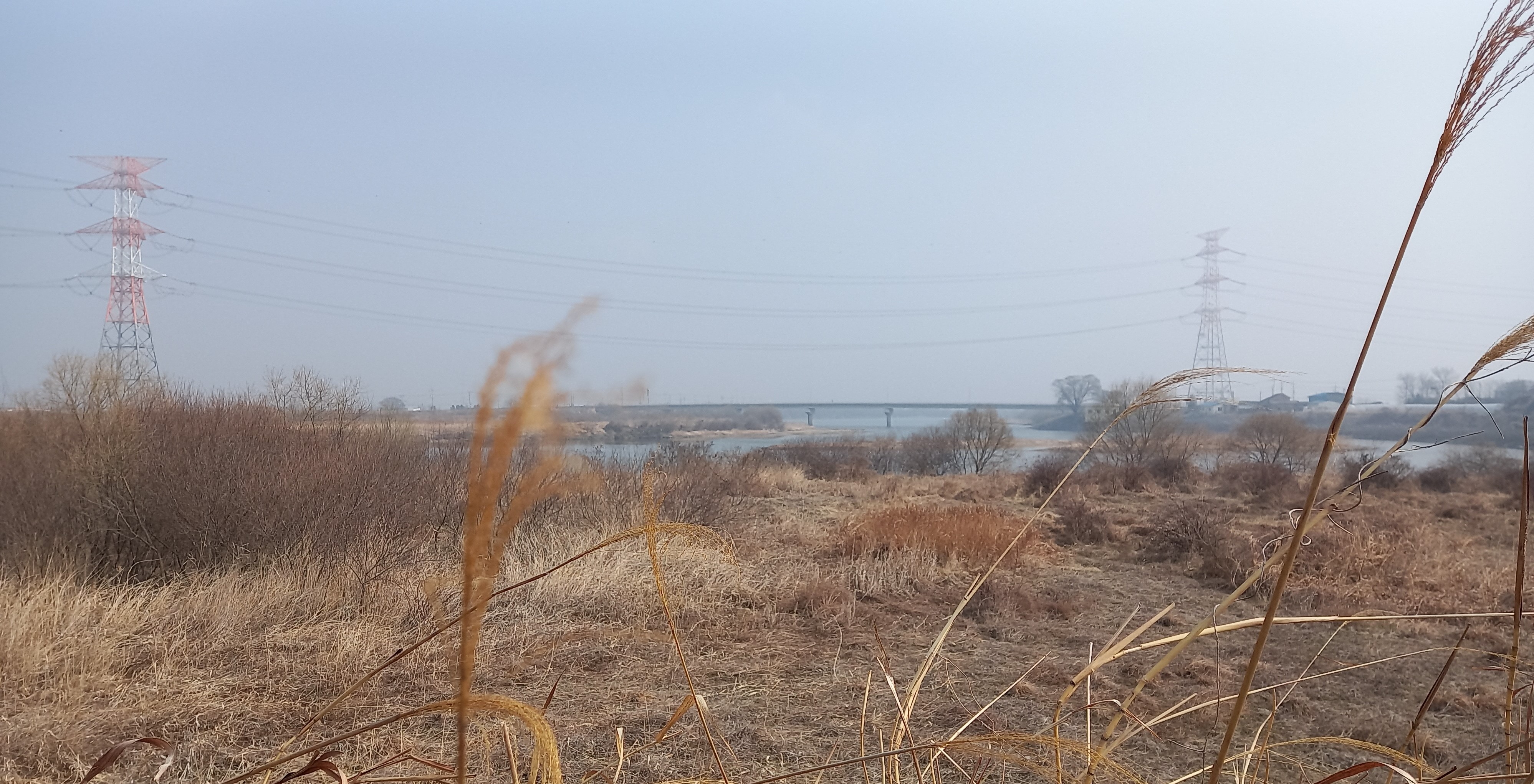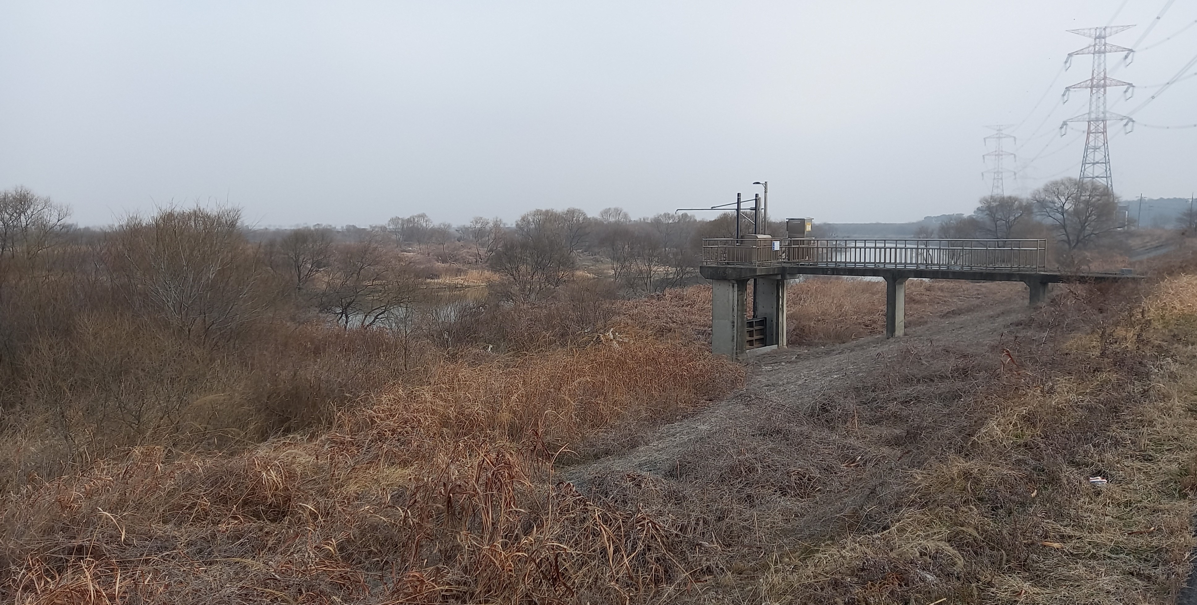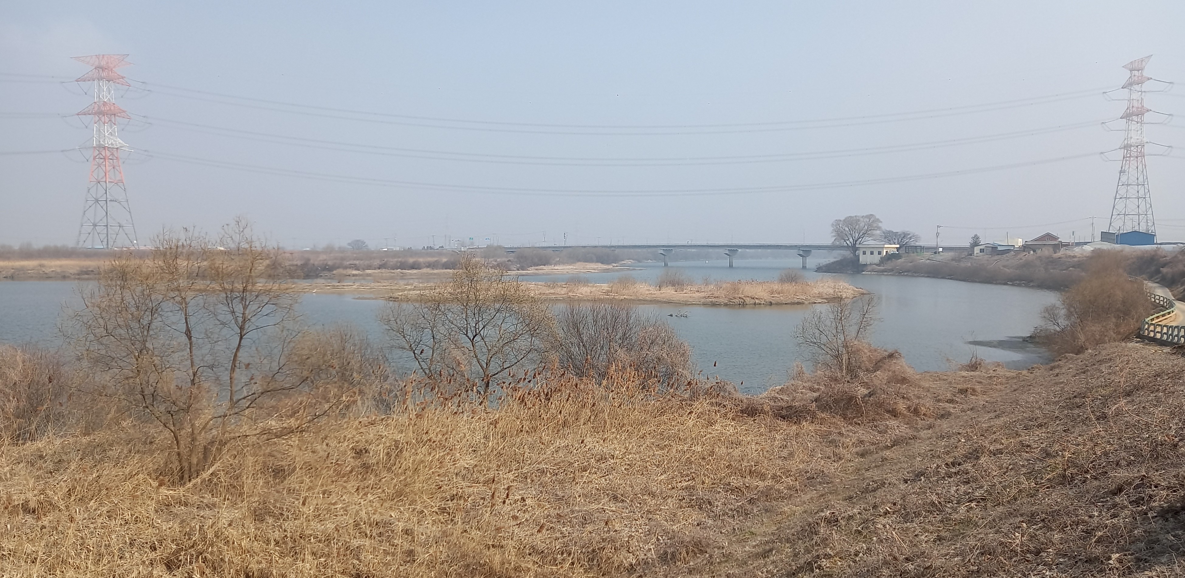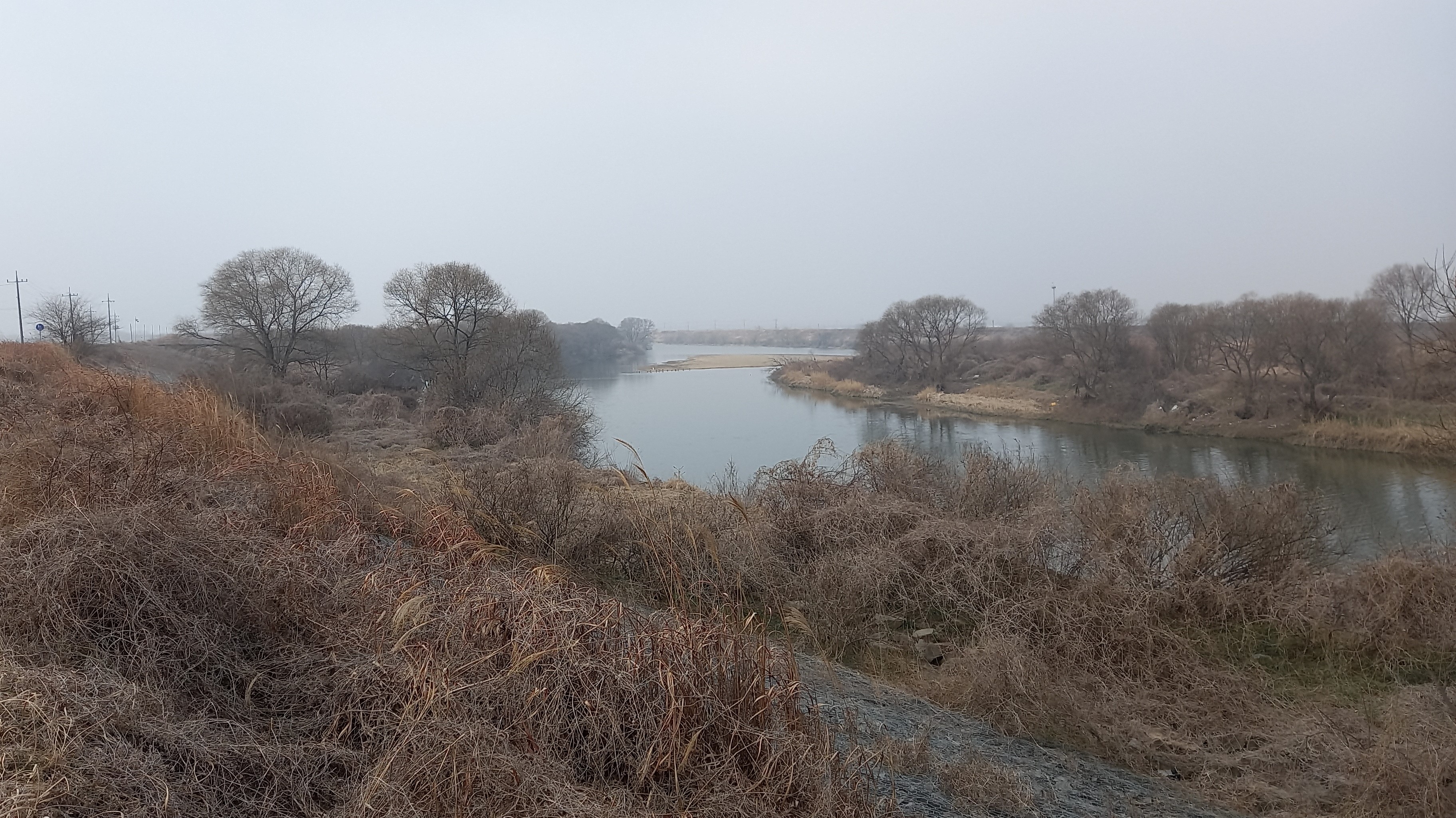흐린 날씨와 갈대가 분위기를 울씨년하게: