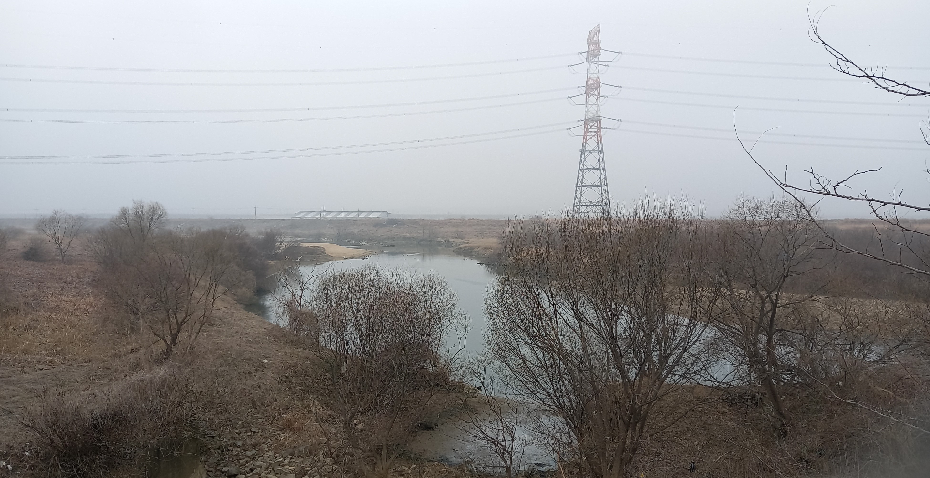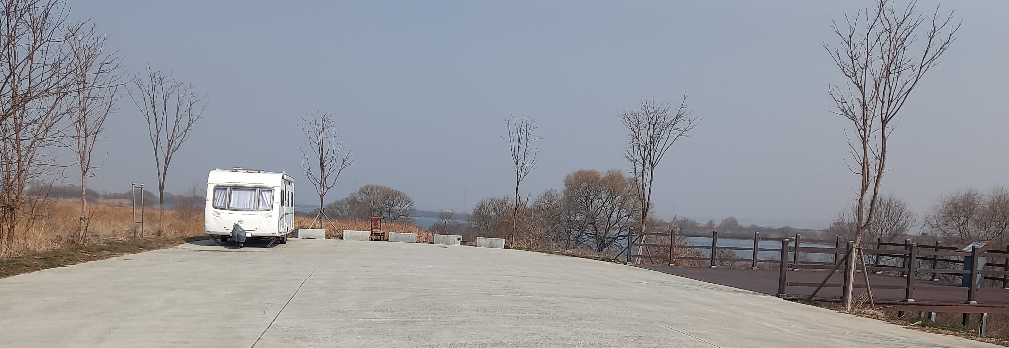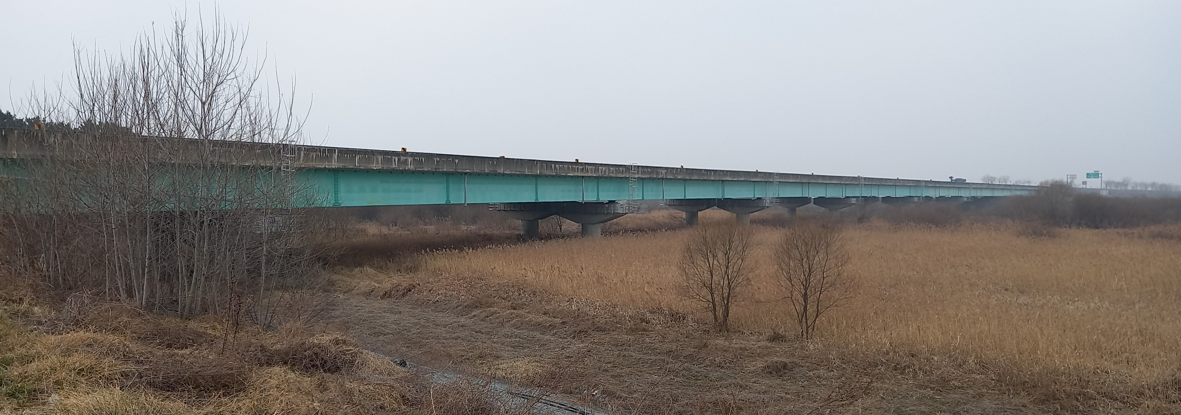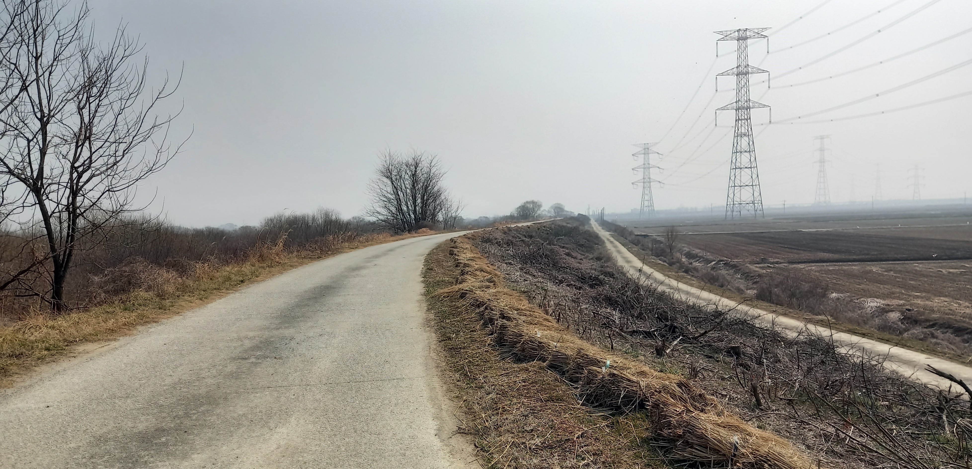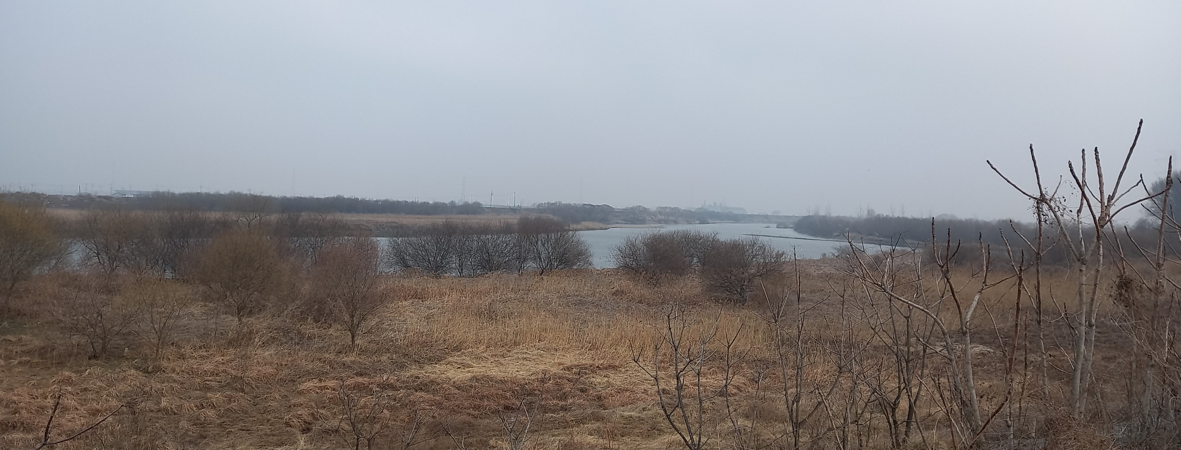 흐린 날씨와 갈대가 분위기를 울씨년하게: