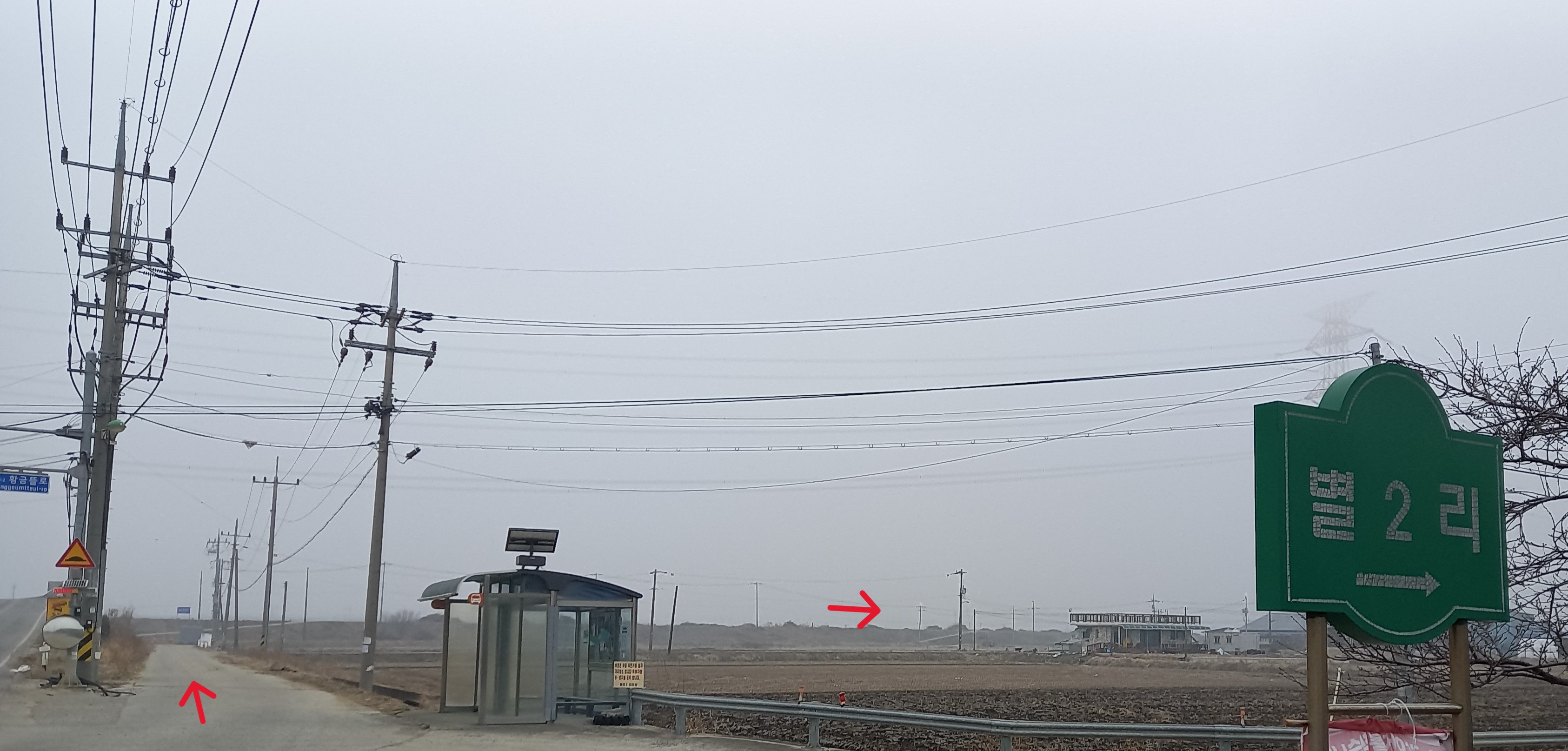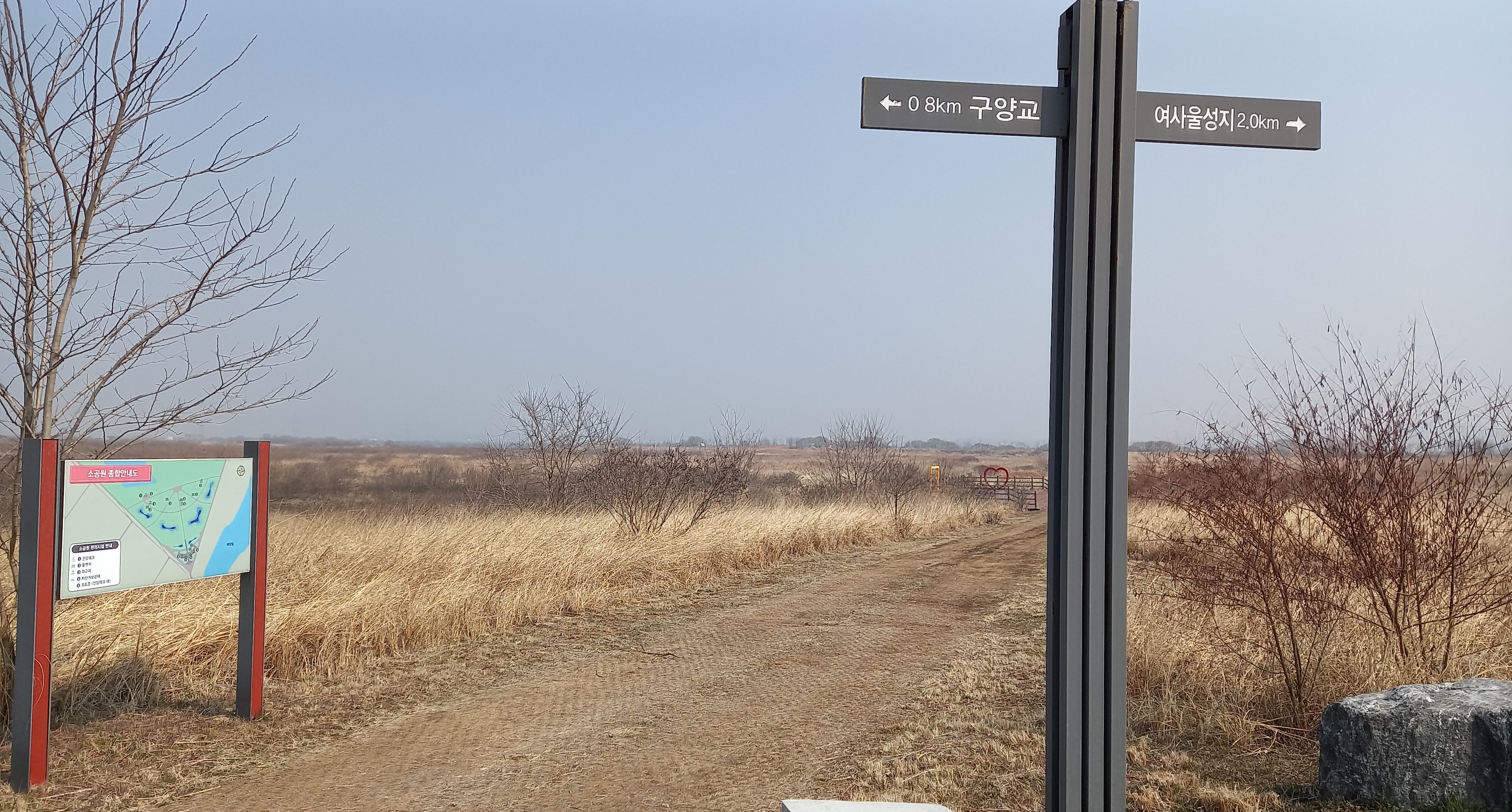 갈대가 많아 굴포공원? 전망대 0.4km 이정목: