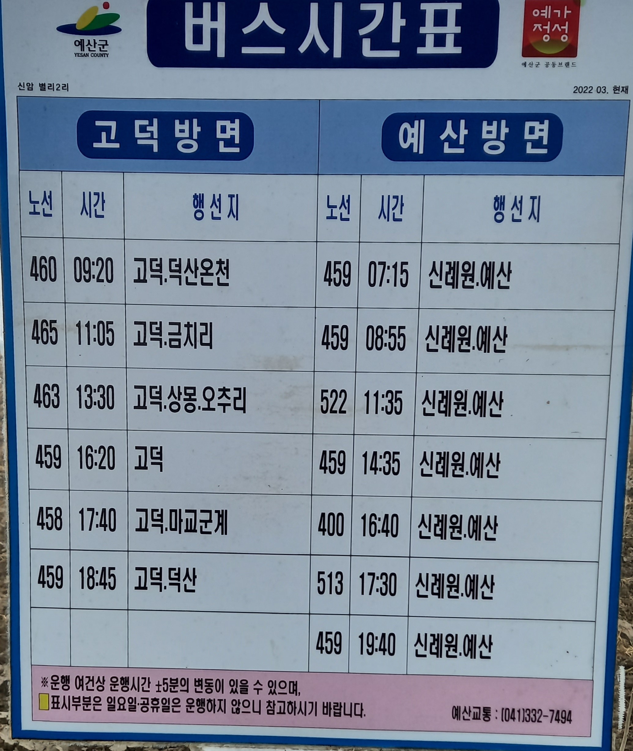 09:04 신례원터미널 460번 고덕·덕산방향 버스