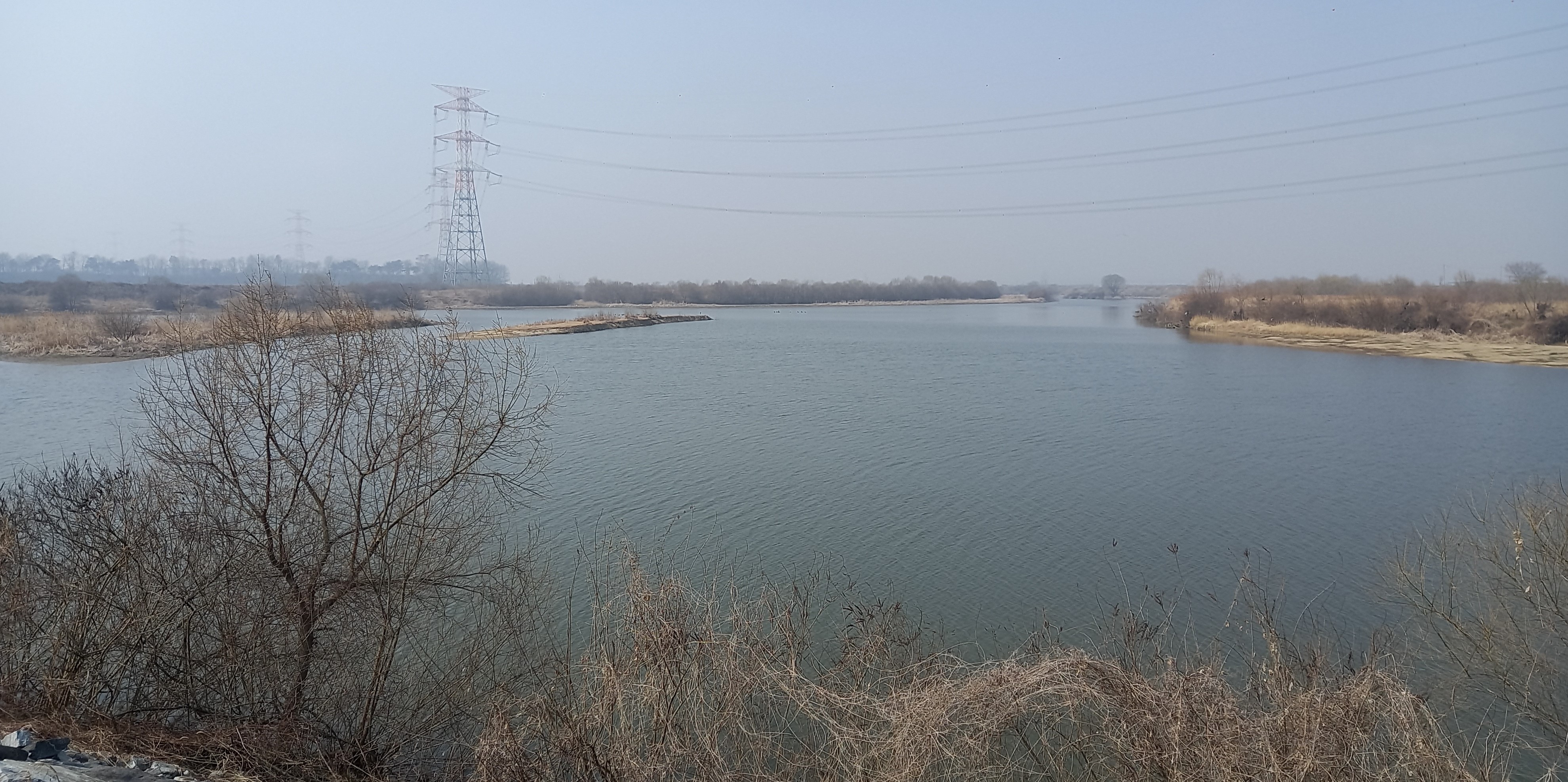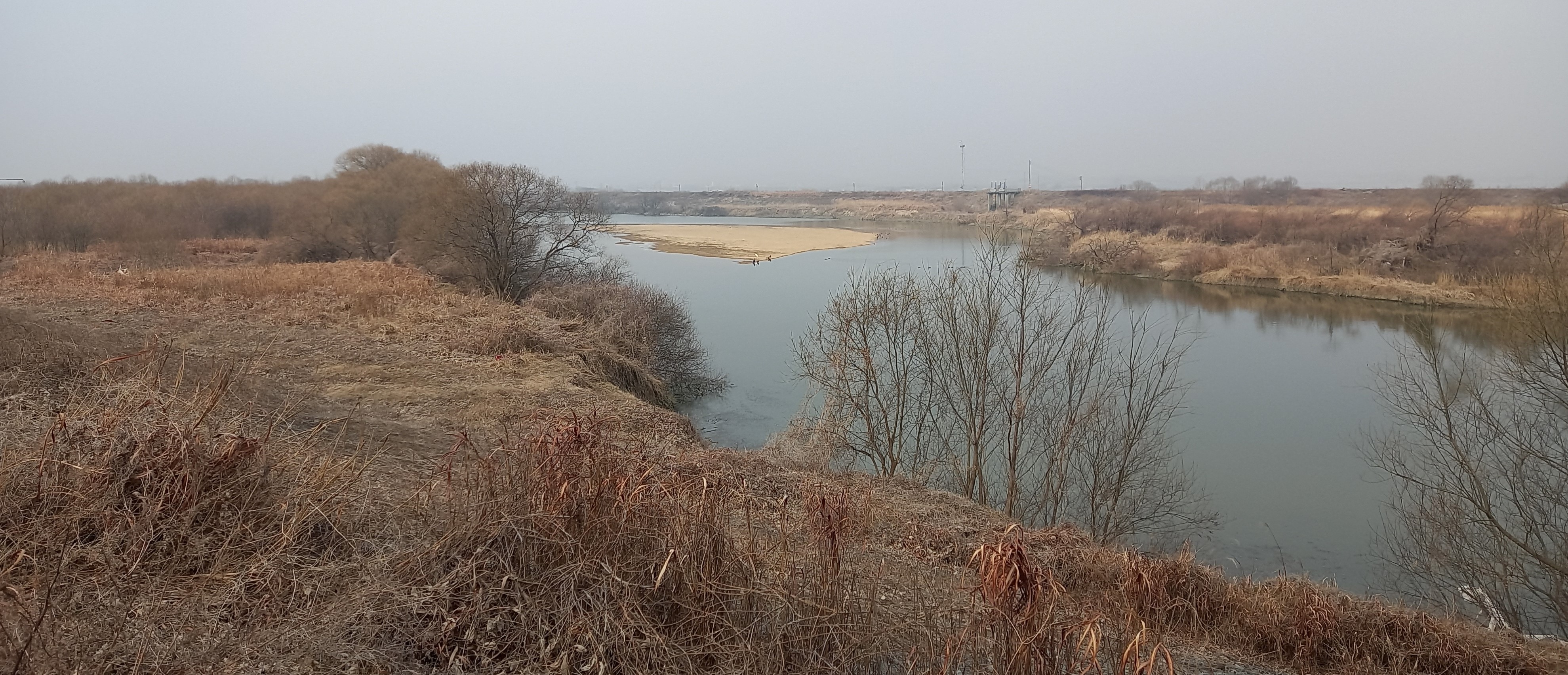 모래톱 우측 방향이 신리성지인데 흐린 날씨탓에 보이지 않습니다: